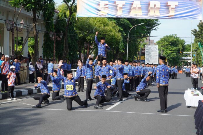 Surabaya 2 Desember 2025 | Draft Rakyat Newsroom – Sebanyak 54 regu gerak jalan meriahkan peringatan Hari Ulang Tahun ke 54 Korps Pegawai Republik Indonesia (Korpri) di Kabupaten Lamongan.