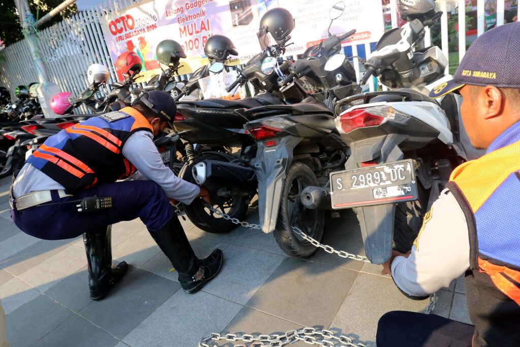 Amankan 2 Jukir Liar, Dishub Surabaya Gembok Puluhan Motor di Depan Grand City Mall