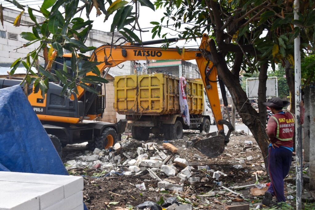 Surabaya 5 Januari 2025 | Draft Rakyat Newsroom – Pemerintah Kota (Pemkot) Surabaya melalui Satpol PP Kota Surabaya melakukan penertiban bangunan liar (bangli), di Jalan Tambak Wedi Baru Gang XII, dan Jalan Tambak Wedi Baru Gang XII-A Surabaya, Minggu (5/1/2024). Penertiban ini dilakukan, karena banyak bangli yang berdiri di tanah aset milik Pemkot Surabaya.