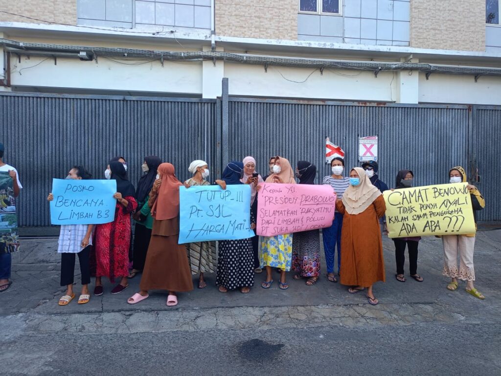 Emak-Emak Wisma Tengger demo di depan pabrik peleburan emas PT SJL