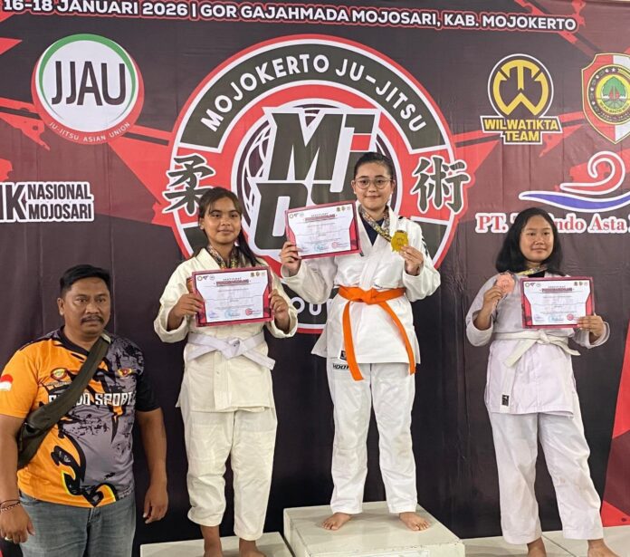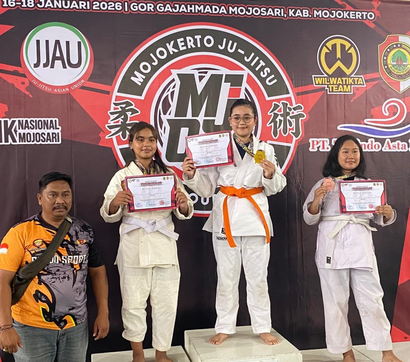 Sidoarjo 19 Januari 2026 | Draft Rakyat Newsroom – Sebanyak 5 medali emas, 12 medali perak, dan 9 medali perunggu, diraih para atlet Jujitsu Kabupaten Sidoarjo, yang telah bertarung dalam Mojokerto Jujitsu Open Tournamen (MJOT) , yang digelar pada 16-18 Januari 2026, di GOR Gajah Mada, Kabupaten Mojokerto.