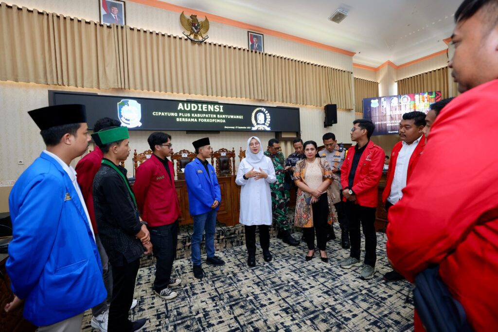 Organisasi mahasiswa yang terdiri dari Himpunan Mahasiswa Islam (HMI), Pergerakan Mahasiswa Islam Indonesia (PMII), Gerakan Mahasiswa Nasional Indonesia (GMNI), dan Ikatan Mahasiswa Muhammadiyah (IMM), audiensi bersama Bupati Banyuwangi Ipuk Fiestiandani dan jajaran DPRD, di gedung dewan setempat, Rabu (3/9/2025). Dalam audiensi tersebut mereka sepakat bersama-sama menjaga kedamaian Banyuwangi.
