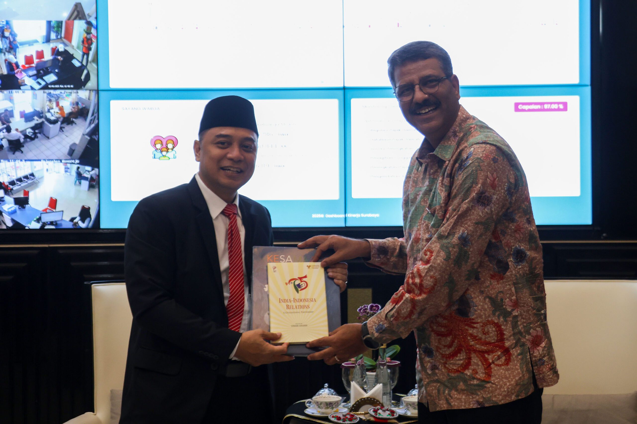 Surabaya 02 Juni 2025 | Draft Rakyat Newsroom – Wali Kota Surabaya Eri Cahyadi menerima kunjungan Konsul Kehormatan India untuk Jawa Timur, Manoj Bhat, di Ruang Kerja Walikota pada Senin (2/6/2025). Pertemuan ini merupakan tindak lanjut dari kunjungan Duta Besar India ke Surabaya pada 26 Mei 2025, dan membahas berbagai potensi kerja sama yang dapat dijalin antara Kota Surabaya dan India.