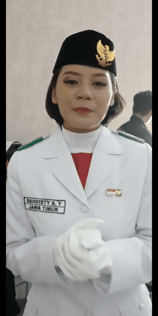 Kepala Badan Kesatuan Bangsa dan Politik (Bakesbangpol) Kota Surabaya, Maria Theresia Ekawati Rahayu mengatakan, bahwa saat ini Rahdisty bertugas di Tim 8 dalam upacara penurunan bendera di IKN. “Ya, dia bertugas di Tim 8 upacara penurunan bendera di IKN. Sebagai arek Suroboyo tentunya bangga (Rahdisty) bisa mengikuti upacara yang pertama kalinya di ibu kota negara baru di tahun 2024 ini,” kata Maria.