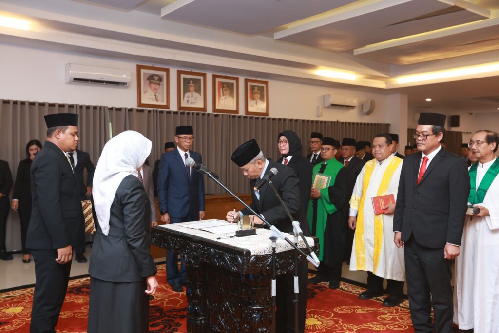 Surabaya 15 April 2025 | Draft Rakyat Newsroom – Bupati Banyuwangi Ipuk Fiestiandani melantik tujuh pejabat Pimpinan Tinggi Pratama di lingkungan Pemkab Banyuwangi, di Kantor Bupati Banyuwangi, Selasa sore (15/4/2025).