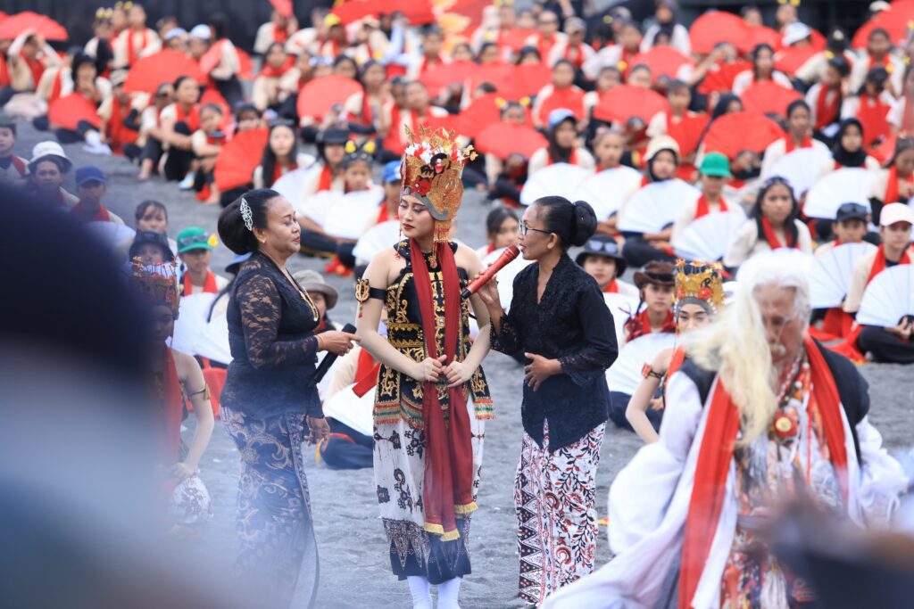 Surabaya 25 Oktober 2025 | Draft Rakyat Newsroom – Sehari sebelum pementasan kolosal Gandrung Sewu 2025, sebanyak 1.400 penari mengikuti prosesi sakral Meras Gandrung di Pantai Marina Boom, Banyuwangi, Jumat (24/10/2025).