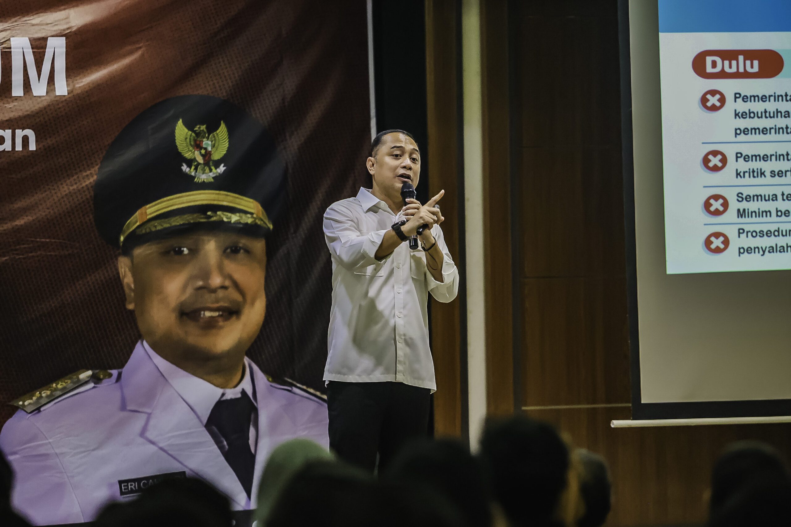 Wali Kota Eri juga bercerita tentang relokasi Kampung 1001 Malam, permukiman di bawah jembatan yang telah ada selama 50 tahun. Dengan pendekatan humanis, warga dipindahkan ke rusun, diberikan pekerjaan, pendidikan, dan pelatihan wirausaha, sehingga kehidupan mereka berubah total. “Kami bekerja dalam senyap, tetapi hasilnya banyak,” ujar dia.