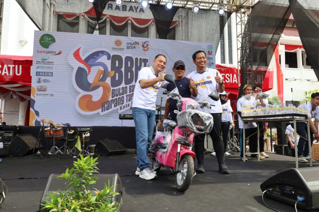 Surabaya 16 Nopember 2025 | Draft Rakyat Newsroom – Puncak Bulan Bhakti Karang Taruna (BBKT) Kota Surabaya Tahun 2025 berlangsung semarak di Taman Surya Balai Kota Surabaya, Minggu (16/11/2025). Kegiatan tersebut diisi dengan Fun Walk hingga Bazar Usaha Mikro Kecil dan Menengah (UMKM).