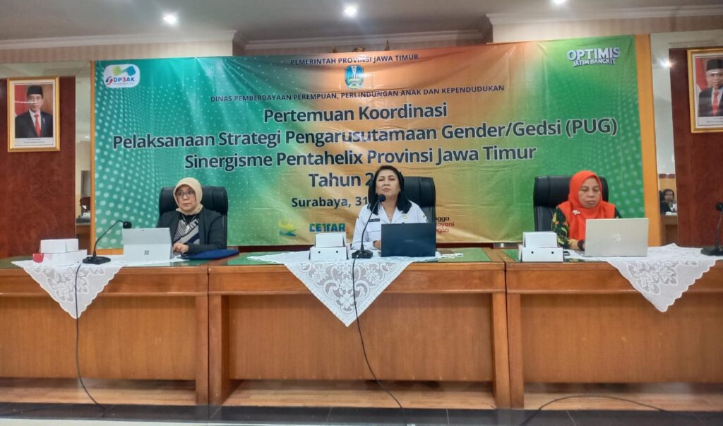 Surabaya 1 Agustus 2024 | Draft Rakyat Newsroom-Pemerintah Provinsi Jawa Timur melalui Dinas Pemberdayaan Perempuan, Perlindungan Anak, dan Kependudukan (DP3AK) Provinsi Jawa Timur mengadakan koordinasi pelaksanaan stategi pengarusutamaan gender/gedsi (pug) sinergisme pentahelix provinsi jawa timur tahun 202
