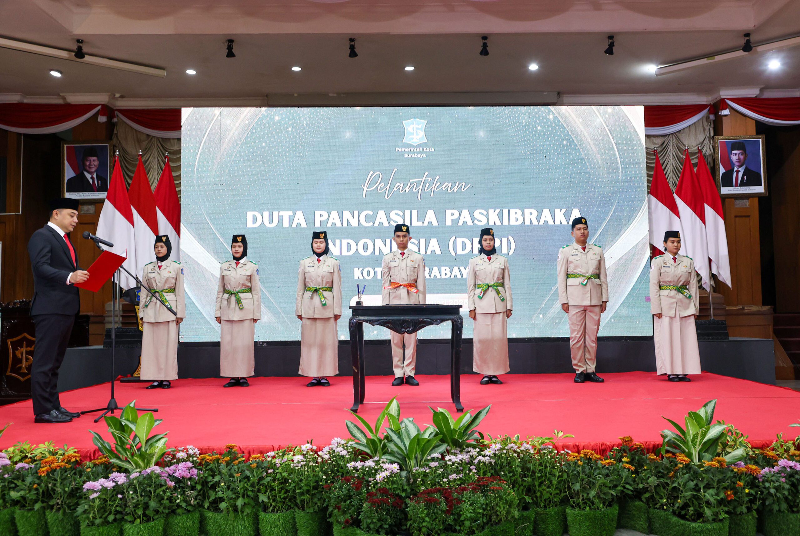 Surabaya 6 Februari 2026 | Draft Rakyat Newsroom – Wali Kota Surabaya, Eri Cahyadi, melantik Duta Pancasila Paskibraka Indonesia (DPPI) Kota Surabaya periode 2025–2029 di Graha Sawunggaling, Kantor Pemerintah Kota (Pemkot) Surabaya, Jumat (6/2/2026). DPPI menjadi wadah bagi para purna paskibraka yang ditetapkan sebagai Duta Pancasila oleh Kepala Badan Pembinaan Ideologi Pancasila (BPIP).