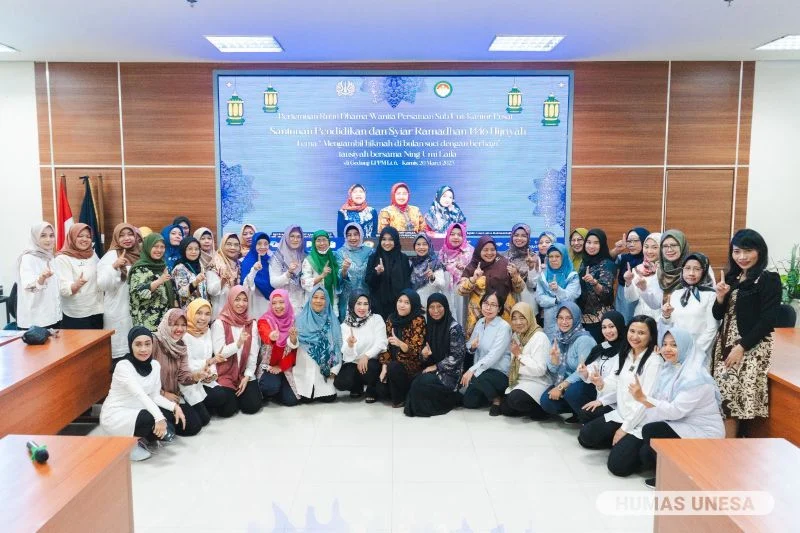 Dharma Wanita Persatuan (DWP) Sub-Unit Kantor Pusat Unesa menggelar santunan pendidikan dan syiar Ramadan bersama Ning Umi Laila. Kegiatan ini berlangsung di Lantai 6 Rektorat Kampus 2 Unesa Lidah Wetan, pada Kamis, 20 Maret 2025.