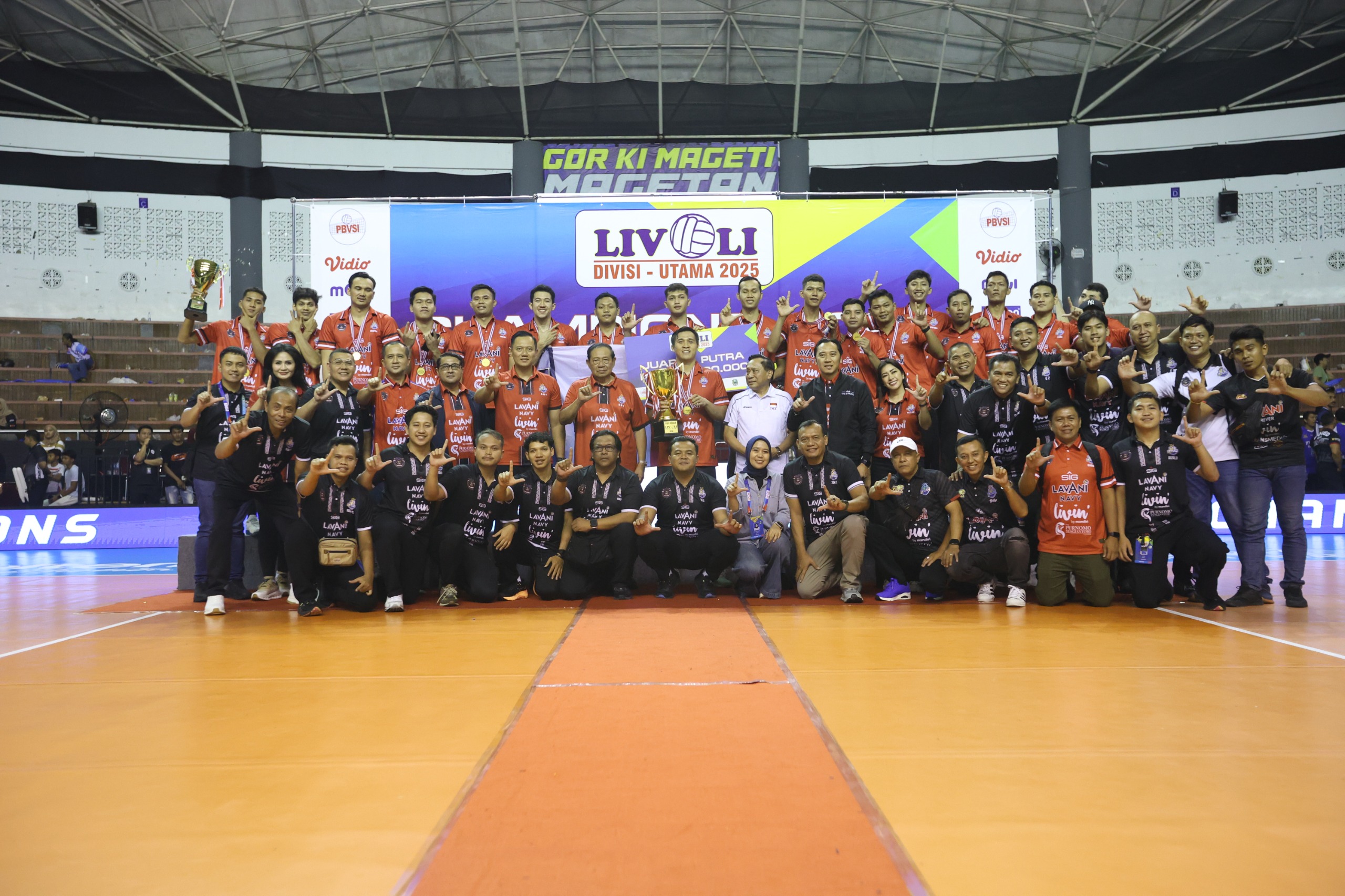 Surabaya 20 Oktober 2025 | Draft Rakyat Newsroom – Klub voli putra LavAni Navy sukses mengukuhkan diri sebagai tim terbaik di Livoli Divisi Utama 2025 setelah menaklukkan TNI AU Electric dengan skor telak 3-0 (25-21, 28-26, 25-14) dalam laga Grand Final yang berlangsung di GOR Ki Mageti, Magetan, Minggu (19/10/2025) malam.