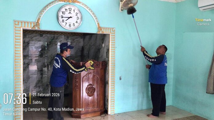 Madiun 22 Februari 2026 | Draft Rakyat Newsroom – Memasuki bulan Ramadhan 2026, Taruna Siaga Bencana (Tagana) dari Dinas Sosial Pemberdayaan Perempuan dan Perlindungan Anak (Dinsos P3A) Kota Madiun terus menunjukkan komitmennya melalui kegiatan Bersih-Bersih Masjid (BBM).