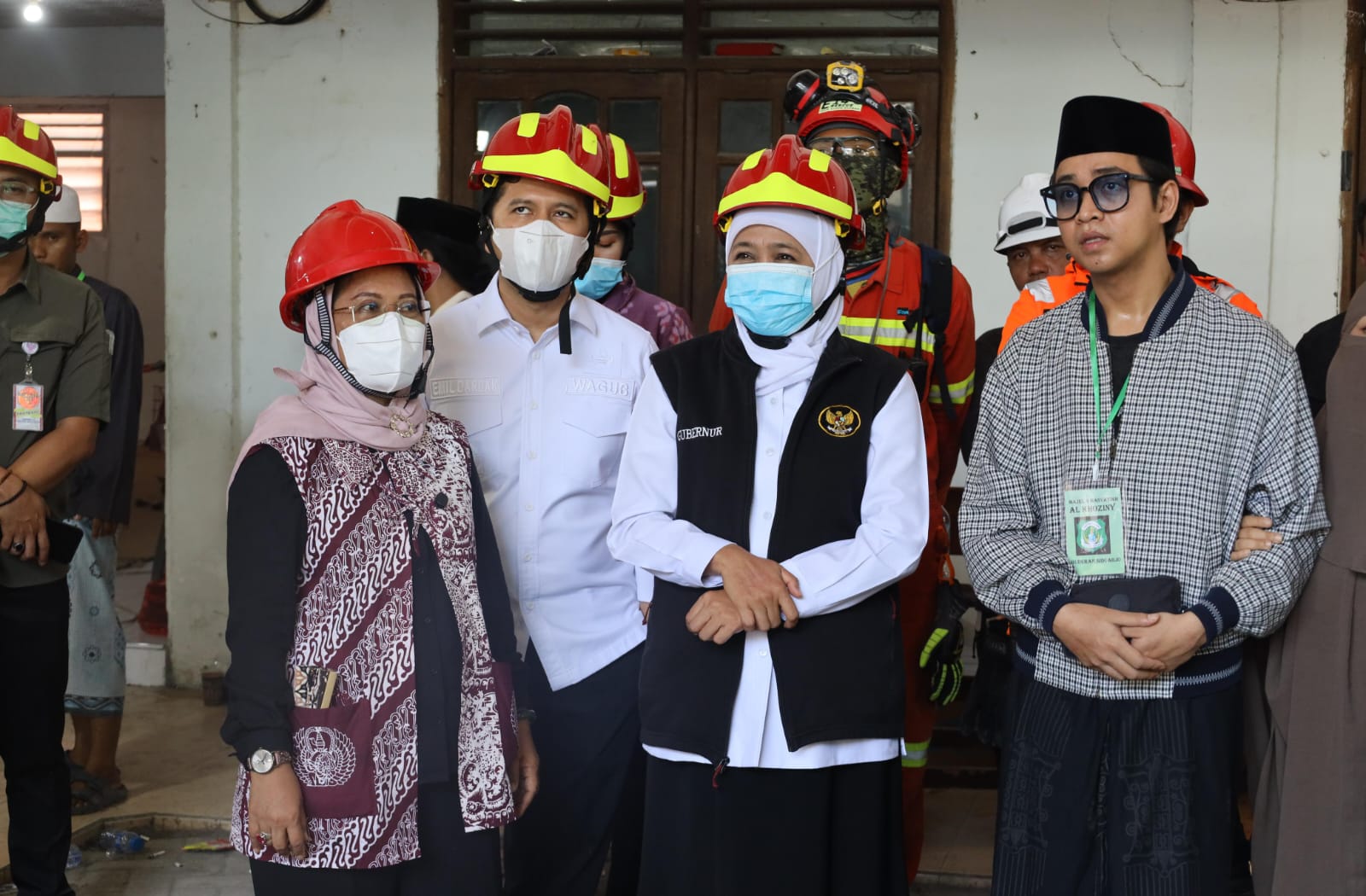 Gubernur Khofifah menyaksikan langsung mobil crane mengangkat puing-puing besar yang menutup akses pencarian. Ia juga menyempatkan diri menemui pengasuh pondok dikediaman untuk memberikan dukungan dan memastikan seluruh pihak mendapat perhatian.