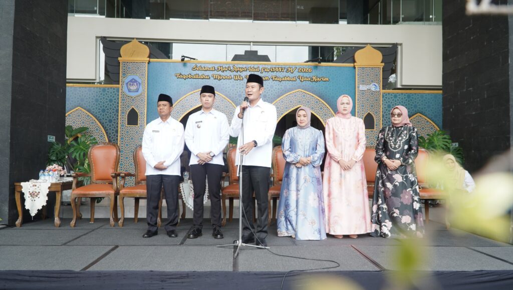 Lamongan 25 Maret 2026 | Draft Rakyat Newsroom – Pemerintah Kabupaten Lamongan menggelar Halal Bihalal bersama seluruh staf dan pejabat di lingkungan Pemerintah Kabupaten Lamongan, sebagai momentum mempererat silaturahmi sekaligus memperkuat performa kerja pasca Hari Raya Idul Fitri 1447 Hijriah, Rabu (25/3) di halaman gedung Pemkab Lamongan.