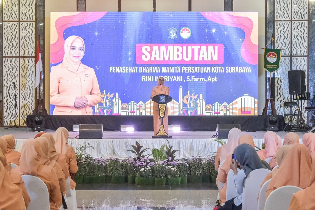 Dewan Penasehat DWP Kota Surabaya, Rini Indriyani dalam sambutannya mengapresiasi seluruh anggota DWP yang telah menunjukkan dedikasi, kebersamaan, dan komitmen yang luar biasa dalam mendukung pembangunan bangsa melalui berbagai program kerja yang positif.