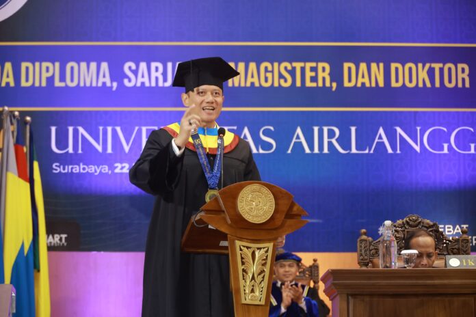 Sebagai Menteri Koordinator Bidang Infrastruktur dan Pembangunan Kewilayahan, AHY mengharapkan agar ilmu yang ia dapatkan dari pendidikan S3 PSDM di Universitas Airlangga dapat menjadi bekal dalam mengemban amanah mendukung pemerintah mewujudkan Indonesia Emas 2045.