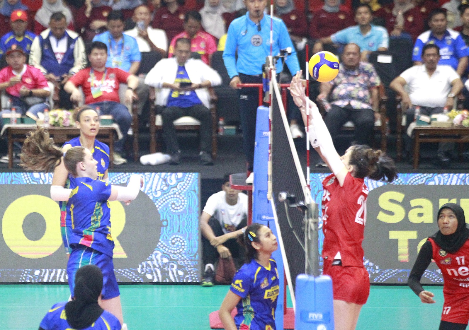 Andalan Yogya Falcons, Sabina Altynbekova, mengawali debutnya. Saat memasuki lapangan pertandingan, dia mendapat sambutan hangat dari ribuan penonton.