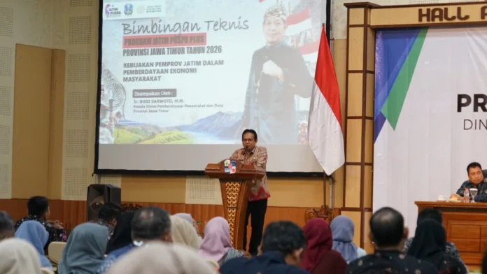 Surabaya 17 April 2026 | Draft Rakyat Newsroom – Pemerintah Provinsi Jawa Timur terus mendorong pemberdayaan desa, salah satunya melalui peran perempuan. Upaya ini diwujudkan lewat Bimbingan Teknis Program Jatim Puspa Plus yang digelar Dinas Pemberdayaan Masyarakat dan Desa (DPMD) Jatim di Kota Batu, 13–18 April 2026. Program ini menargetkan pengentasan kemiskinan perdesaan yang masih 12,55 persen, atau lebih tinggi dibanding kemiskinan perkotaan sebesar 6,93 persen.
