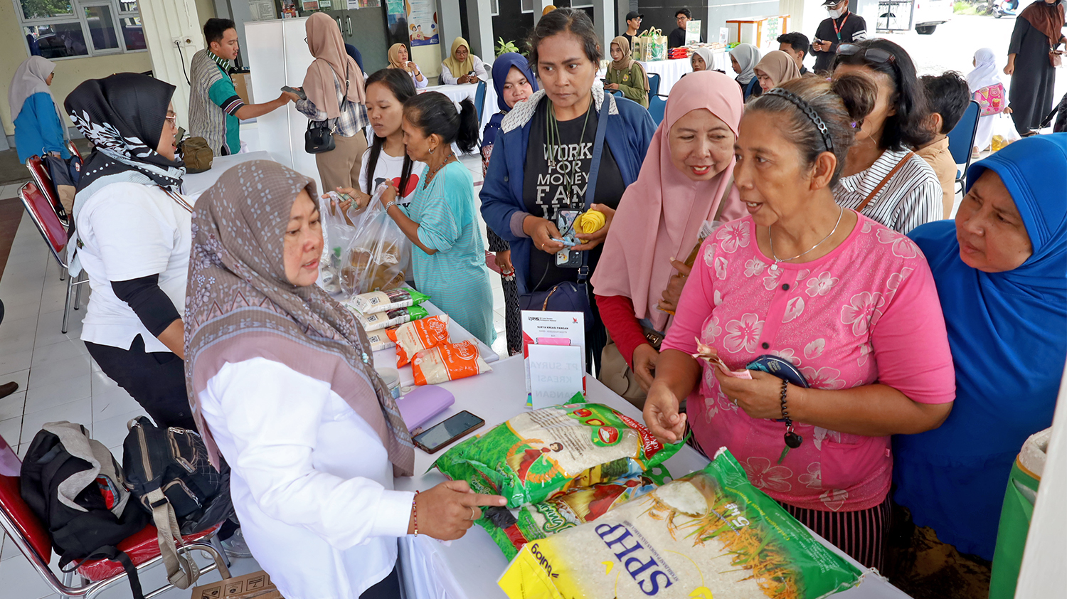 Warga di wilayah tereebut, terlihat antusias menyerbu komoditas pangan berkualitas dengan harga di bawah pasar yang disediakan untuk menjaga daya beli masyarakat selama Ramadan hingga menjelang Idulfitri 1447 Hijriah.