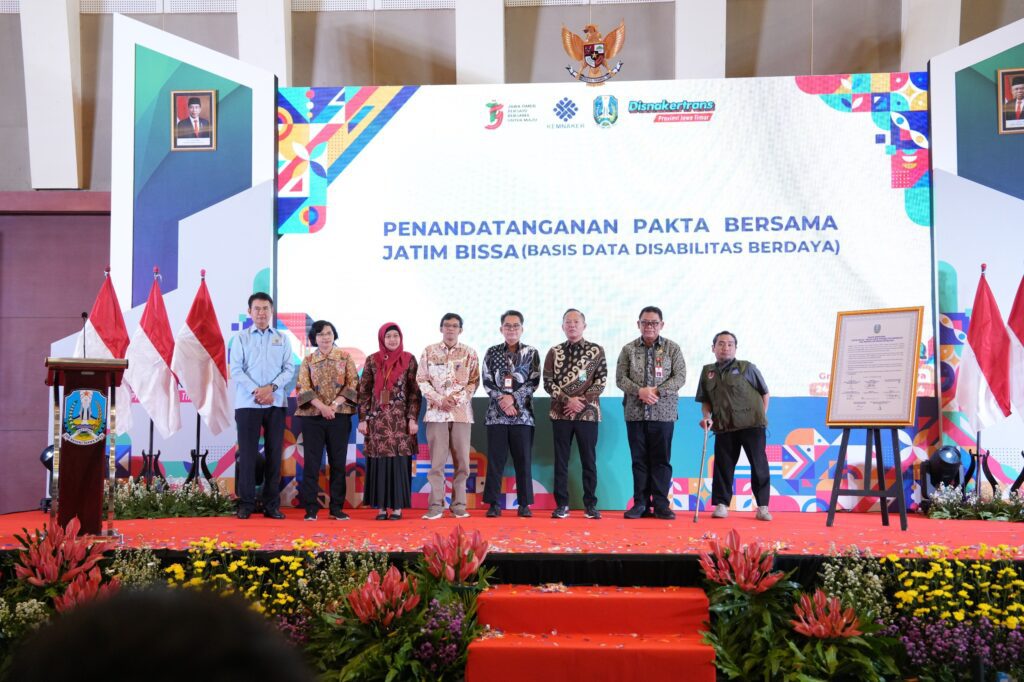Pj Sekdaprov Jatim juga sangat mengapresiasi dan menyambut baik diluncurkannya “Jatim Bissa” atau Basis Data Disabilitas Berdaya. Jatim Bissa merupakan pengembangan layanan dari ULD Ketenagakerjaan bagi angkatan kerja penyandang disabilitas.