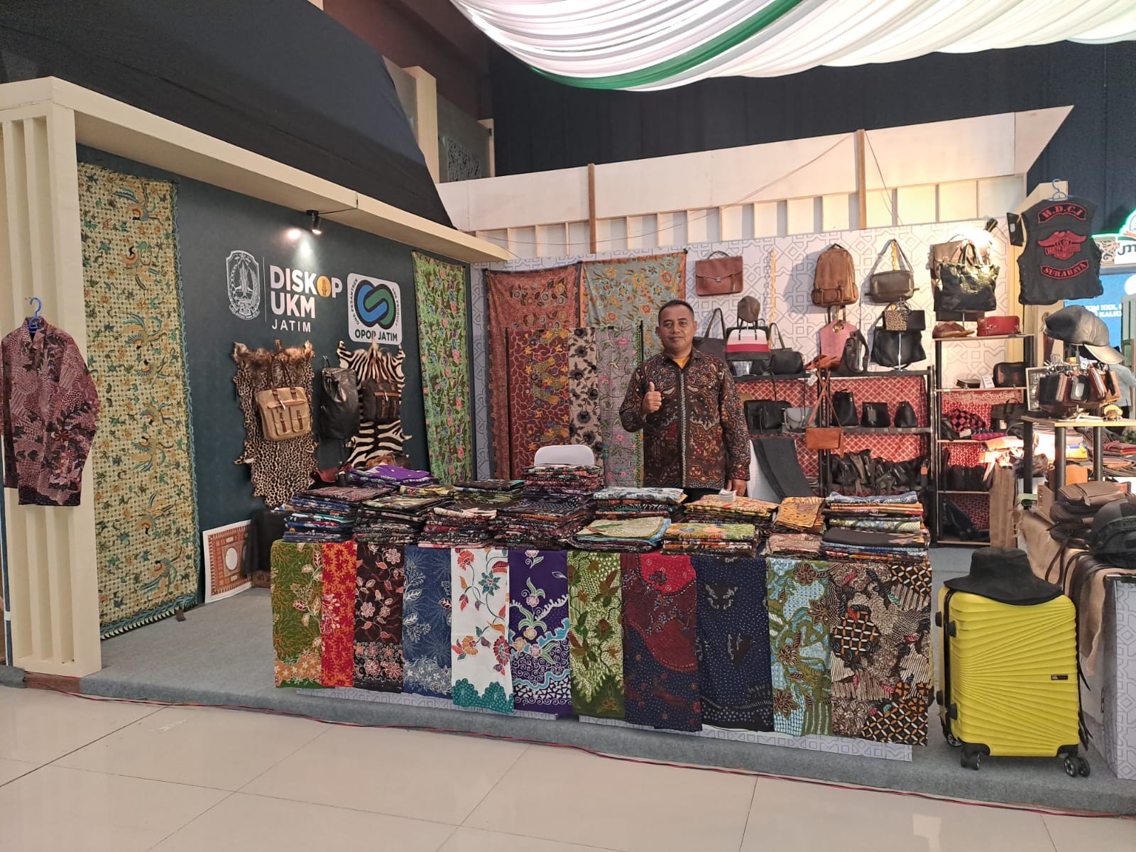 Surabaya 10 September 2024 | Draft Rakyat Newsroom- Tidak hanya berlaga di arena Musabaqah Tilawatil Qur’an (MTQ) Nasional XXX, Kafilah Jawa Timur juga turut meramaikan Expo MTQ Nasional dengan menampilkan berbagai produk unggulan daerah. Di antara produk yang dipamerkan, batik khas Madura asal Kabupaten Pamekasan dan beragam kerajinan kulit dari Kabupaten Sidoarjo menjadi sorotan utama para pengunjung expo yang berlangsung di Samarinda, Kalimantan Timur.