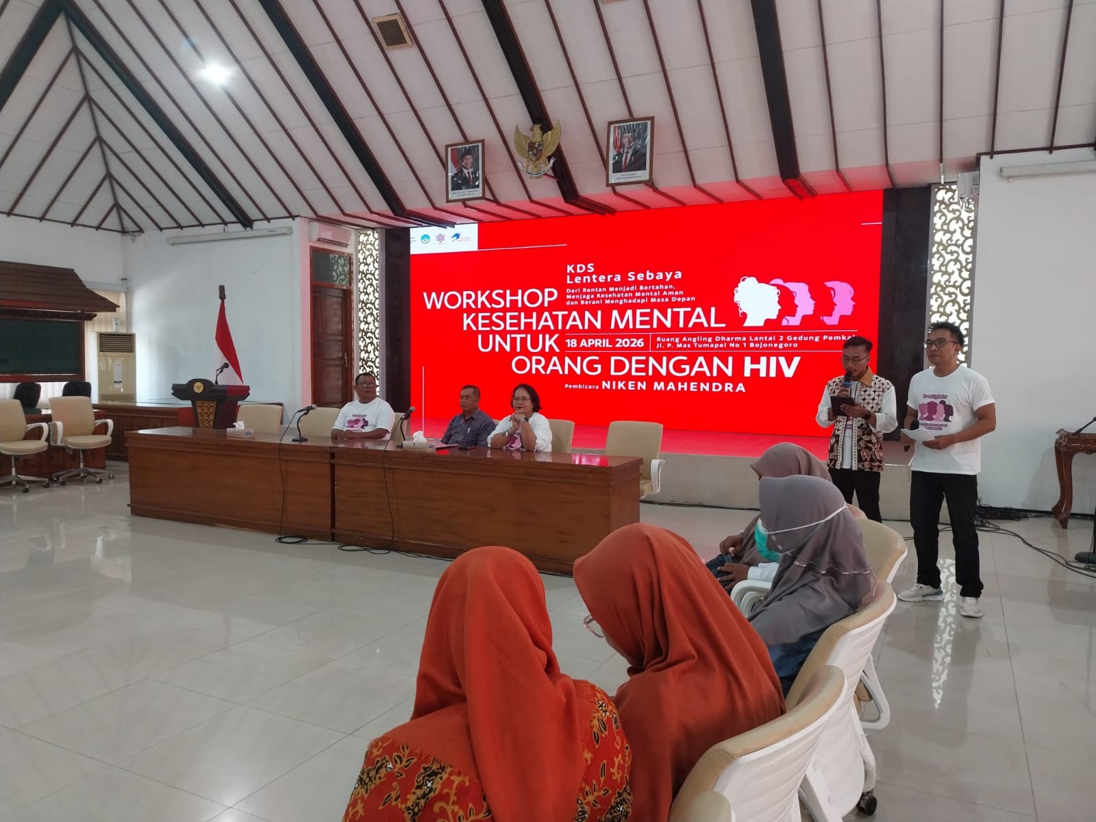 Bojonegoro 18 April 2026 | Draft Rakyat Newsroom – Workshop Kesehatan Mental pada orang dengan HIV (ODHIV) berlangsung penuh makna, Sabtu (18/4/2026) di ruang Angling Dharma, gedung Pemkab Bojonegoro. Kegiatan yang digelar Kelompok Dukungan Sebaya (KDS) Lentera Sebaya ini mengambil tema ‘Dari Rentan Menjadi Bertahan, Menjaga Kesehatan Mental Aman dan Berani Menghadapi Masa Depan’.