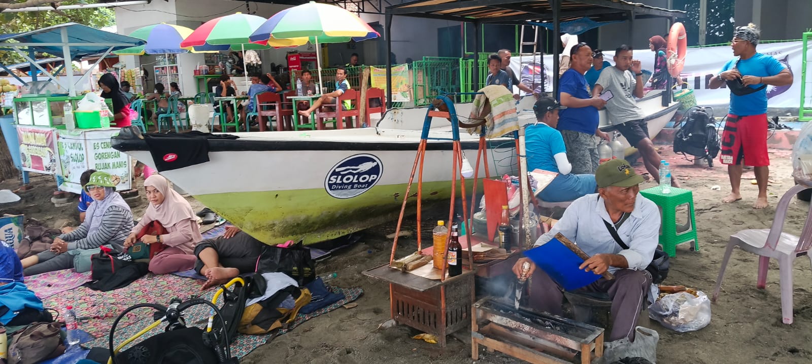Hal yang sama juga disampaikan oleh Fitriyah yang saat itu melayani pembeli warung Ikan Bakar Unyil, selain menjual aneka masakan ikan bakar, ada juga makanan ringan seperti mie instan dan minuman yang tertata rapi di etalase maupun kopi renteng yang digantung di seutas kawat. “Memang kalau ada kegiatan di Pasir Putih pengunjungnya banyak dan banyak pembeli,” katanya.