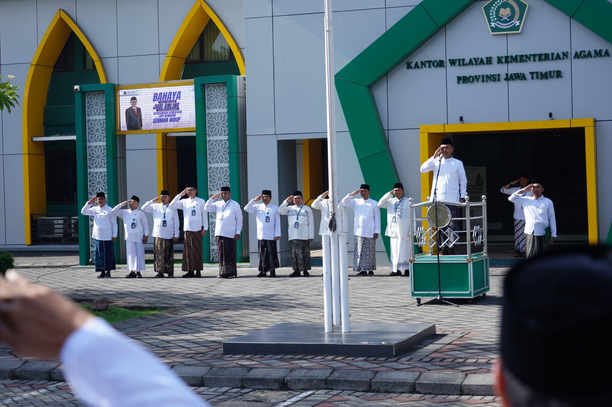 Apel Peringatan Hari Santri 2025 di Kanwil Kemenag Jawa Timur menjadi refleksi dan peneguhan semangat santri dalam membangun karakter bangsa, memperkuat semangat kebangsaan, serta menumbuhkan rasa pengabdian kepada agama dan tanah air. (her)