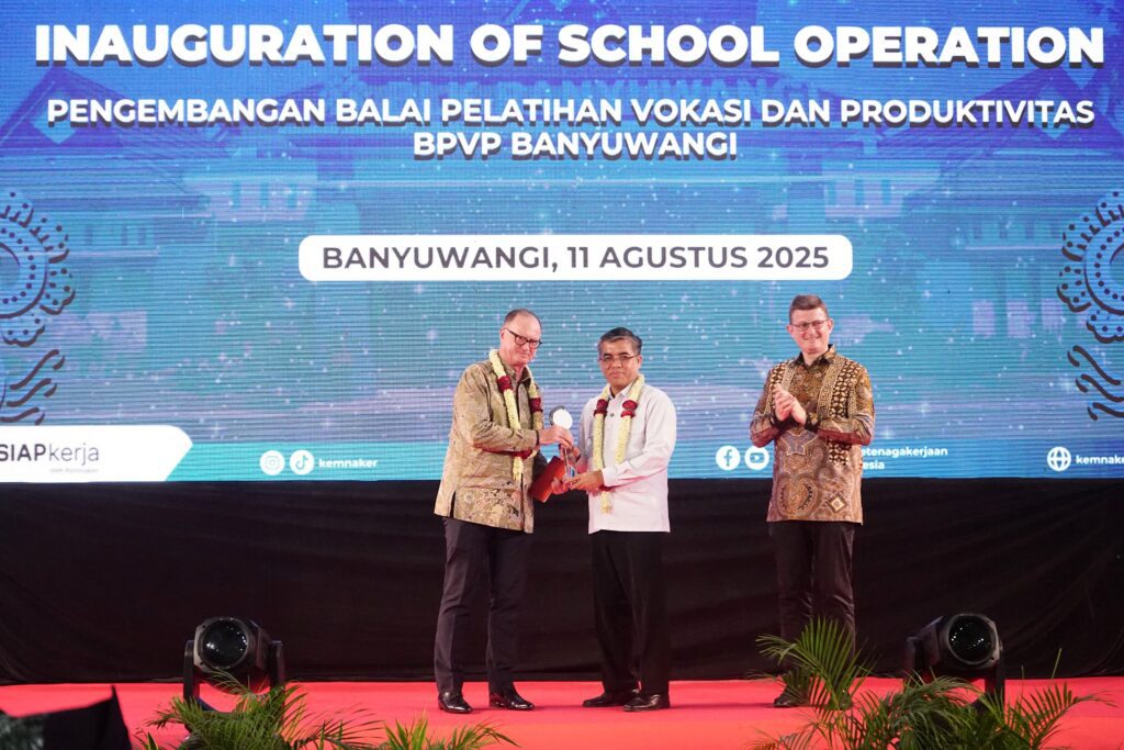 Kesepakatan kerja sama ditandai dengan penandatanganan dokumen Development of Vocational Training Center (Pusat Pengembangan Pelatihan Vokasi) Banyuwangi dalam acara Inauguration of School Operation BPVP Banyuwangi, Jawa Timur, Senin (11/8/2025).