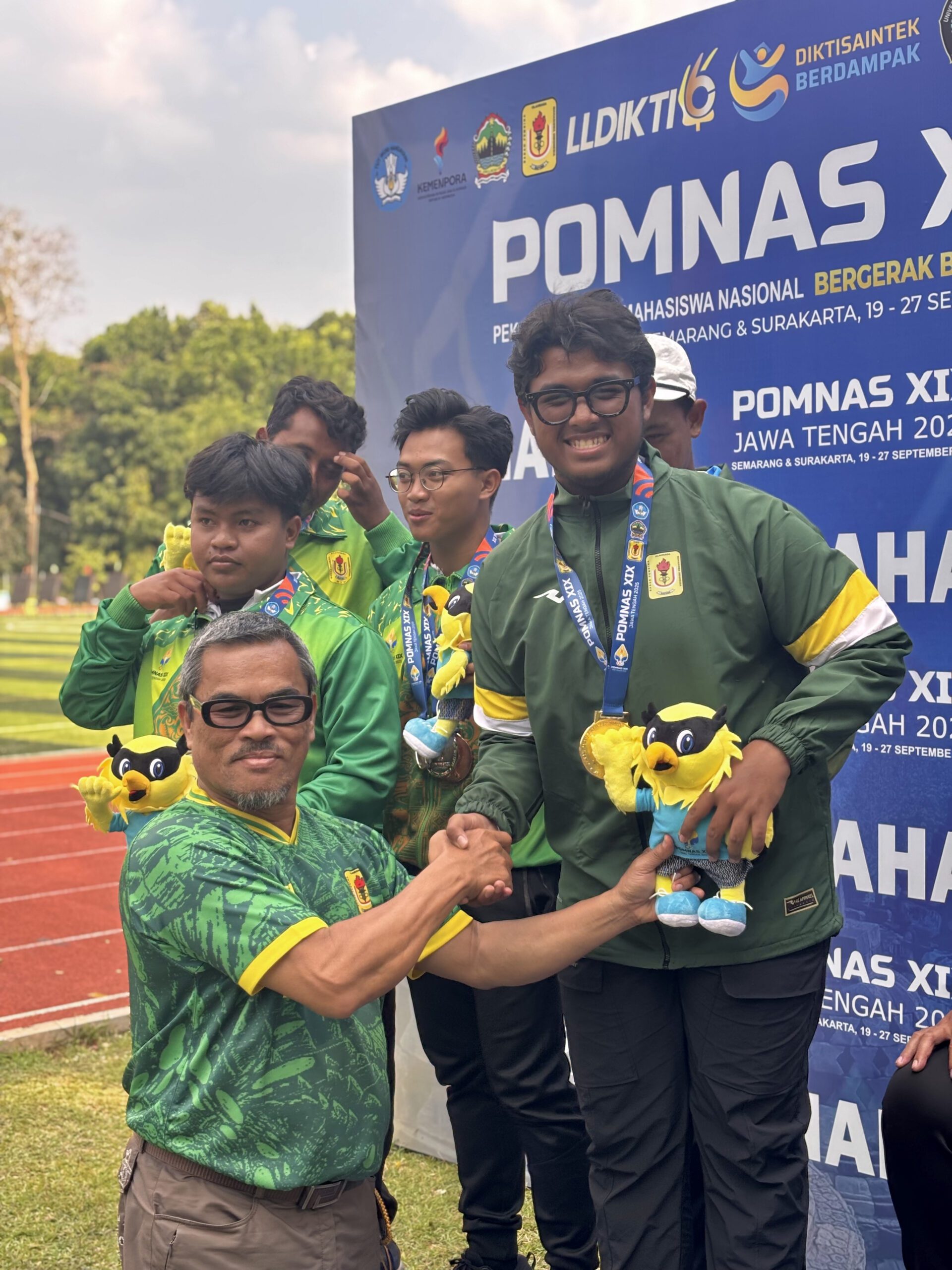 Surabaya 29 September 2025 | Draft Rakyat Newsroom – Atlet panahan Universitas Airlangga (UNAIR), Muhammad Yattaqi W, berhasil menyumbangkan medali emas dalam Pekan Olahraga Mahasiswa Nasional (POMNAS) XIX tahun 2025. Mahasiswa program studi Antropologi angkatan 2023 Fakultas Ilmu Sosial dan Ilmu Politik (FISIP) tersebut meraih gelar Juara I Kategori Aduan Beregu Nasional Putra. Ia berhasil mengharumkan nama Provinsi Jawa Timur dan almamater.