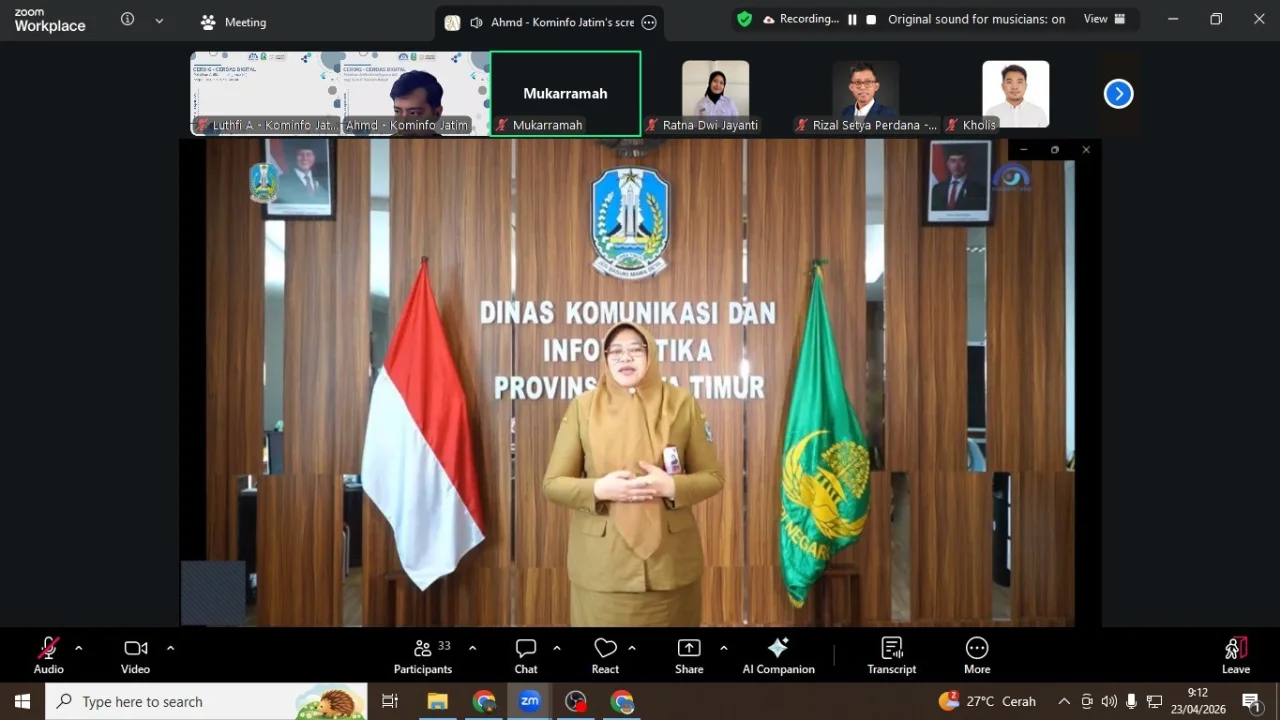 Melalui program CERDIG (Cerdas Digital), Dinas Komunikasi dan Informatika (Diskominfo) Jawa Timur menggelar pelatihan Artificial Intelligence bagi guru IT Sekolah Rakyat secara daring, Kamis (23/4/2026). Fokusnya bukan lagi pengenalan dasar, melainkan pemanfaatan agentic AI dan automasi berbasis large language model (LLM) yang mulai banyak digunakan di berbagai sektor.