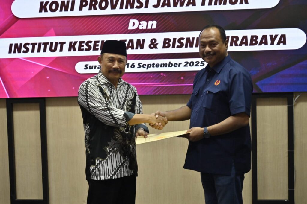 Surabaya 16 September 2025 | Draft Rakyat Newsroom – Komite Olahraga Nasional Indonesia (KONI) Jawa Timur terus menunjukkan komitmennya terhadap masa depan atlet berprestasi. Salah satu langkah strategis yang ditempuh adalah menjalin kerja sama dengan Institut Kesehatan dan Bisnis Surabaya (IKBIS) dalam bidang pendidikan untuk atlet Jawa Timur.
