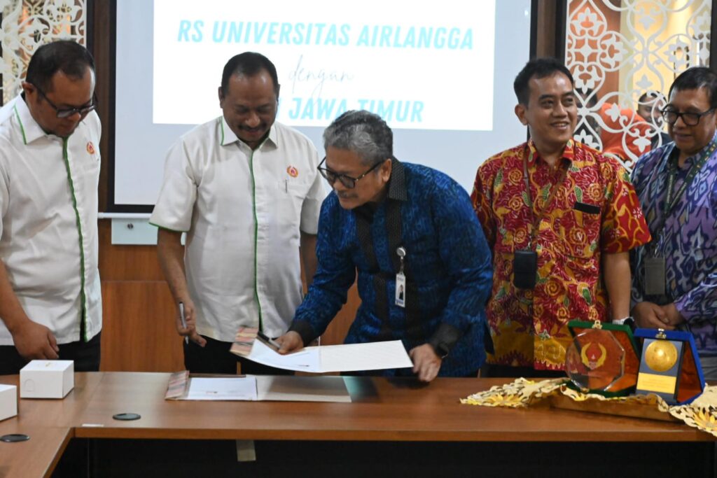 Penandatanganan kerjasama ini dilakukan di Ruang Prabu RSUA Surabaya, antara Ketua Umum KONI Jatim Muhammad Nabil dan Direktur RSUA Prof Dr dr Nasronudin, SpPD, K-PTI, Kamis (1/8).