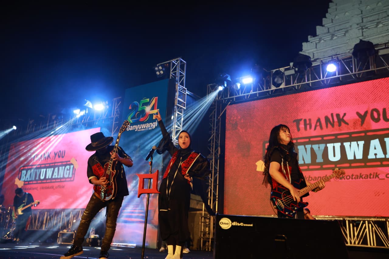 Surabaya 21 Desember 2025 | Draft Rakyat Newsroom – Konser Kemanusiaan dalam rangkaian peringatan Hari Jadi Banyuwangi (Harjaba) ke-254, menampilkan Kotak Band, di Gedung Seni dan Budaya (Gesibu) Banyuwangi, Sabtu (20/12/2025) malam. Acara tersebut juga didedikasikan untuk korban bencana Sumatera.