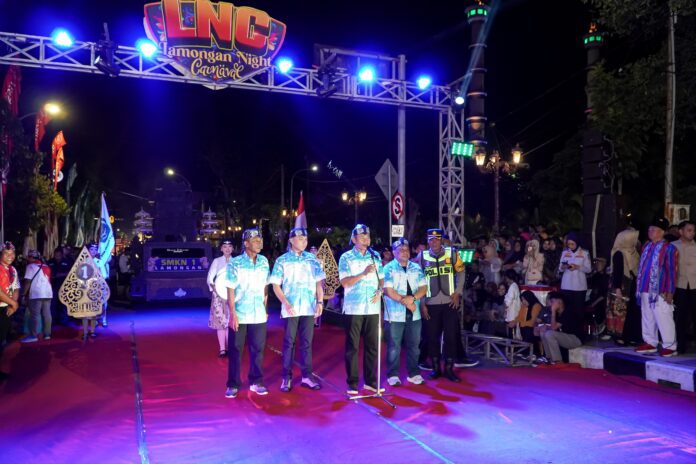 Surabaya 31 Agustus 2025 | Draft Rakyat Newsroom – Lamongan night carnival (LNC) yang menjadi puncak perayaan Hari Ulang Tahun (HUT) ke 80 Republik Indonesia diberangkatkan oleh Bupati Lamongan Yuhronur Efendi, Sabtu (30/8) di depan monumen water toren atau depan gedung Pemkab Lamongan yang menjadi titik pemberangkatan.