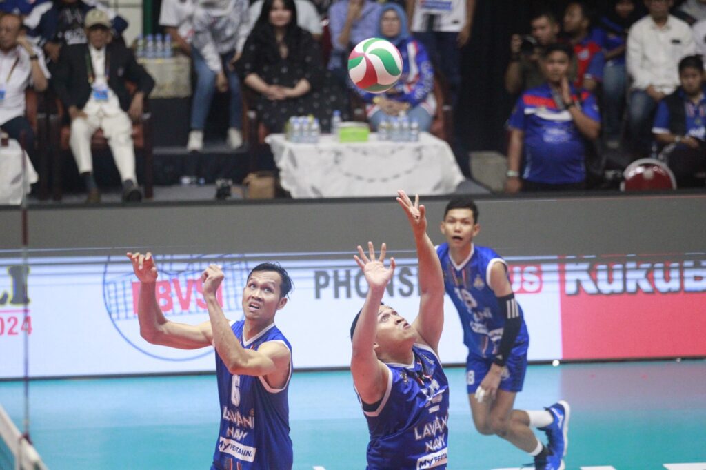 Surabaya 24 Nopember 2024 | Draft Rakyat Newsroom – Tim putra LavAni Navy meraih gelar juara Livoli Divisi Utama,2024, usai memenangi laga final atas Indomaret Sidoarjo dengan skor 3-2 (23-25, 21-25, 25-16, 25-21, 20-18) di GOR Tri Dharma Petrokimia Gresik, Sabtu (23/11/2024) malam.