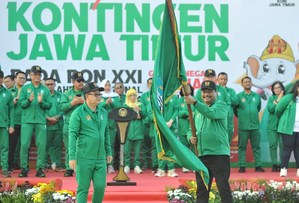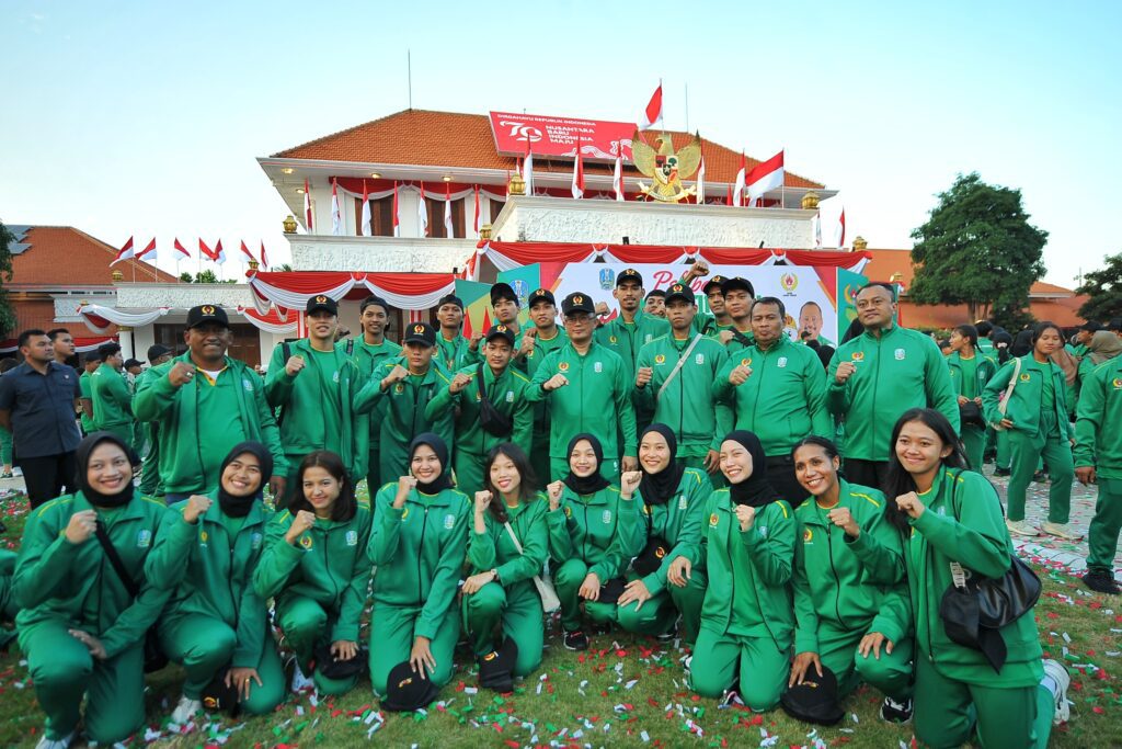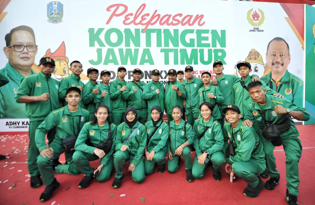 Hal tersebut disampaikannya saat melepas Kontingen Jawa Timur di Halaman Gedung Negara Grahadi Surabaya, Jumat (30/8). Pelepasan tersebut ditandai dengan pemakaian jaket dan topi secara simbolis kepada perwakilan atlet dan pelatih oleh Pj. Gubernur Adhy.