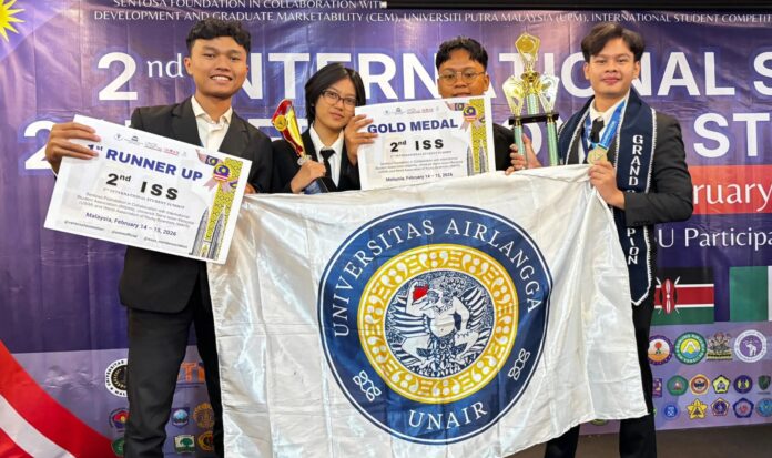 Menjawab tantangan itu, lima mahasiswa Program Studi Ilmu Ekonomi Universitas Airlangga (UNAIR) yang tergabung dalam Tim AgriTerrace sukses meraih medali emas pada kompetisi Essay International Student Summit yang berlangsung pada Februari 2026 di Kuala Lumpur, Malaysia. Tim yang terdiri atas Jose Centurio Siahaan, Fawaz Januar Iksan, Laura Amaria Dwiputri Julianti, Fachry Haris, dan Mesakh Roi Pratama Ginsu tersebut bersaing dengan ratusan kelompok dari enam negara dalam ajang yang diselenggarakan oleh Sentosa Foundation bekerja sama dengan Universiti Sains Islam Malaysia (USIM) serta World Associations of Young Scientist.