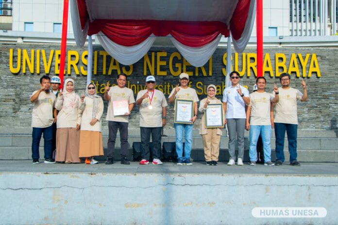Surabaya 8 Februari 2025 | Draft Rakyat Newsroom – Pemecahan rekor MURI (Museum Rekor Dunia Indonesia) warnai Festival Mobilitas Akademik Mahasiswa Universitas Negeri Surabaya (Unesa) di Lapangan Rektorat Kampus 2 Lidah Wetan, Surabaya, pada Sabtu, 8 Februari 2025. Kegiatan ini mengusung tema “Strengthening the SDGs through Integration with Digital Technology.”