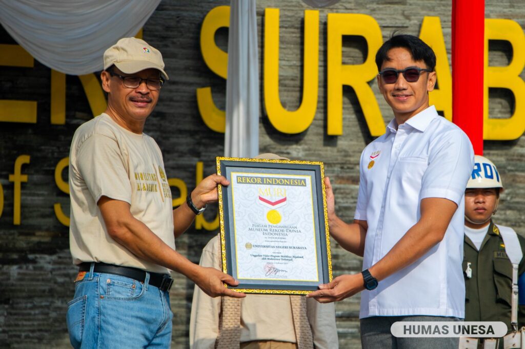 “Sebagai apresiasi, MURI memberikan penghargaan kepada Unesa. Semoga ini bisa menginspirasi mahasiswa kampus lain sehingga bisa terus semangat untuk membuat produk karya dan inovasi yang baru, yang bermanfaat bagi pendidikan di Indonesia,” harapnya.