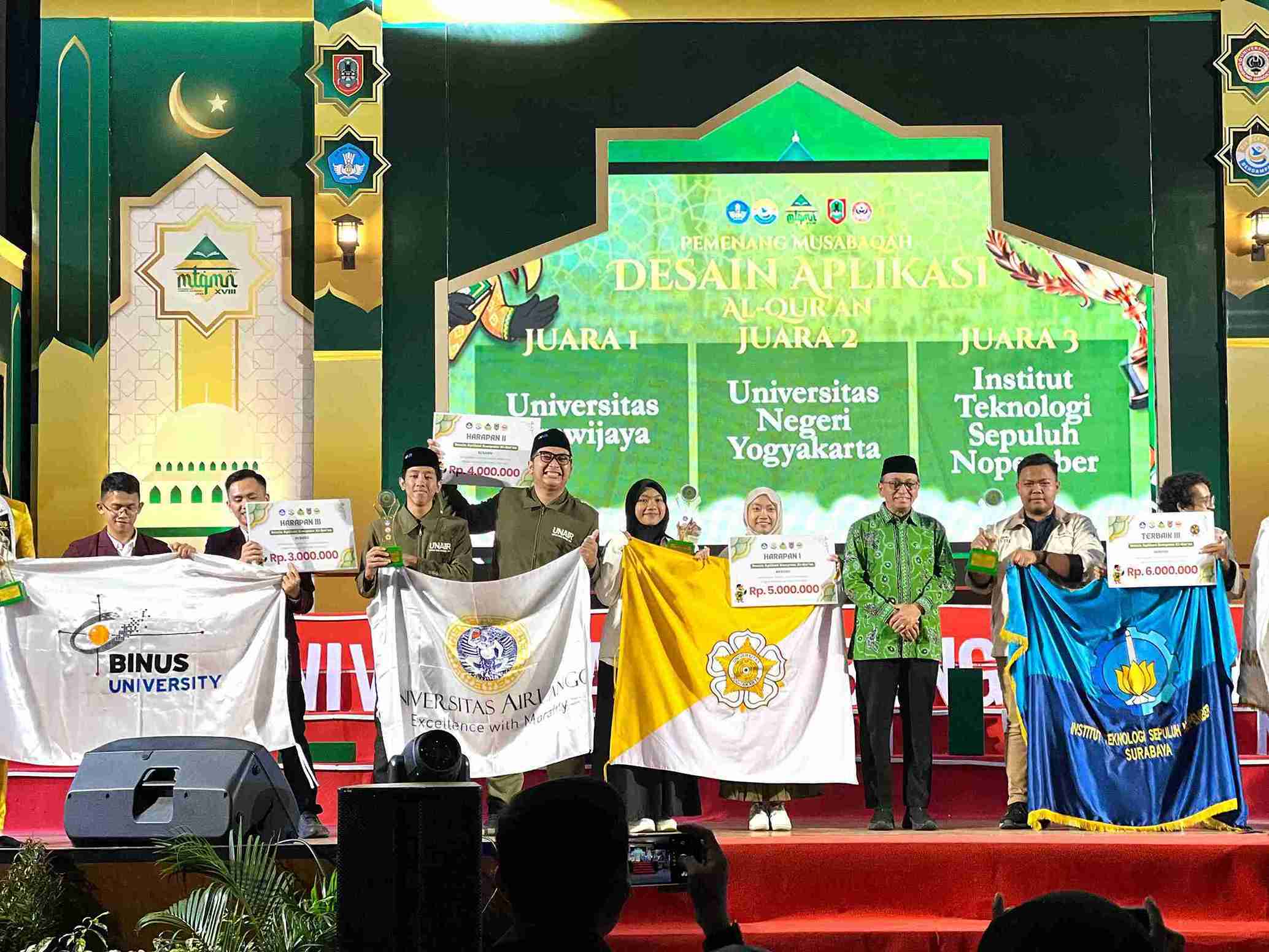 Surabaya 15 Oktober 2025 | Draft Rakyat Newsroom – Mahasiswa Universitas Airlangga (UNAIR) kembali menorehkan prestasi yang luar biasa pada ajang Musabaqah Tilawatil Quran Mahasiswa Nasional (MTQMN) XVIII. Kompetisi tersebut terselenggara oleh Kemendiktisaintek di Universitas Lambung Mangkurat, Banjarmasin pada Minggu-Jumat (5-10/10/2025). Pada ajang tersebut dua mahasiswa UNAIR berhasil meraih juara harapan 2 pada cabang lomba Desain Aplikasi Komputer Al Quran (DAQ).