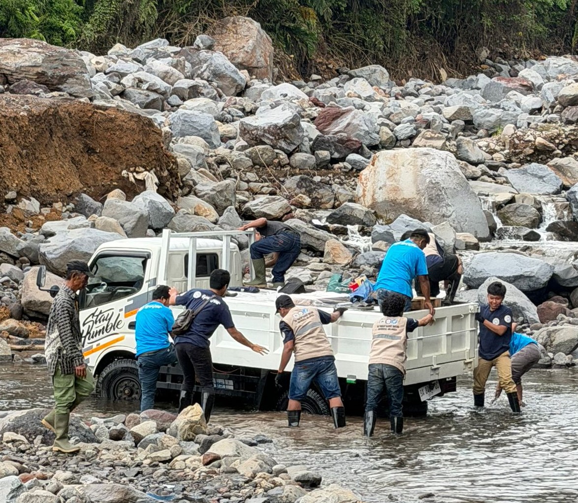 “Untuk mobilisasi perangkat, kami harus menaiki truk menyeberangi sungai. Karena truk kami muatannya cukup banyak, jadinya sempat terjebak di jembatan darurat yang ada di sungai tersebut, bannya sempat tertahan oleh bebatuan,” tutur Reza. Kendati demikian, situasi tersebut tidak menyurutkan semangat mereka untuk memberikan manfaat bagi masyarakat Malalak.