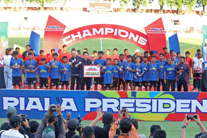 Surabaya 3 Oktober 2025 | Draft Rakyat Newsroom – Menteri Pemuda dan Olahraga (Menpora) Republik Indonesia, Erick Thohir menyampaikan apresiasi tinggi kepada Pemerintah Kota (Pemkot) Surabaya atas keberhasilan penyelenggaraan ajang Piala Presiden 2025 untuk kategori usia U-12 dan U-15. Hal ini disampaikan, saat Menpora Erick Thohir menghadiri secara langsung final Piala Presiden 2025 didampingi Wali Kota Surabaya, Eri Cahyadi di Gelora 10 Nopember (G10N), Tambaksari, Kamis (2/10/2025).