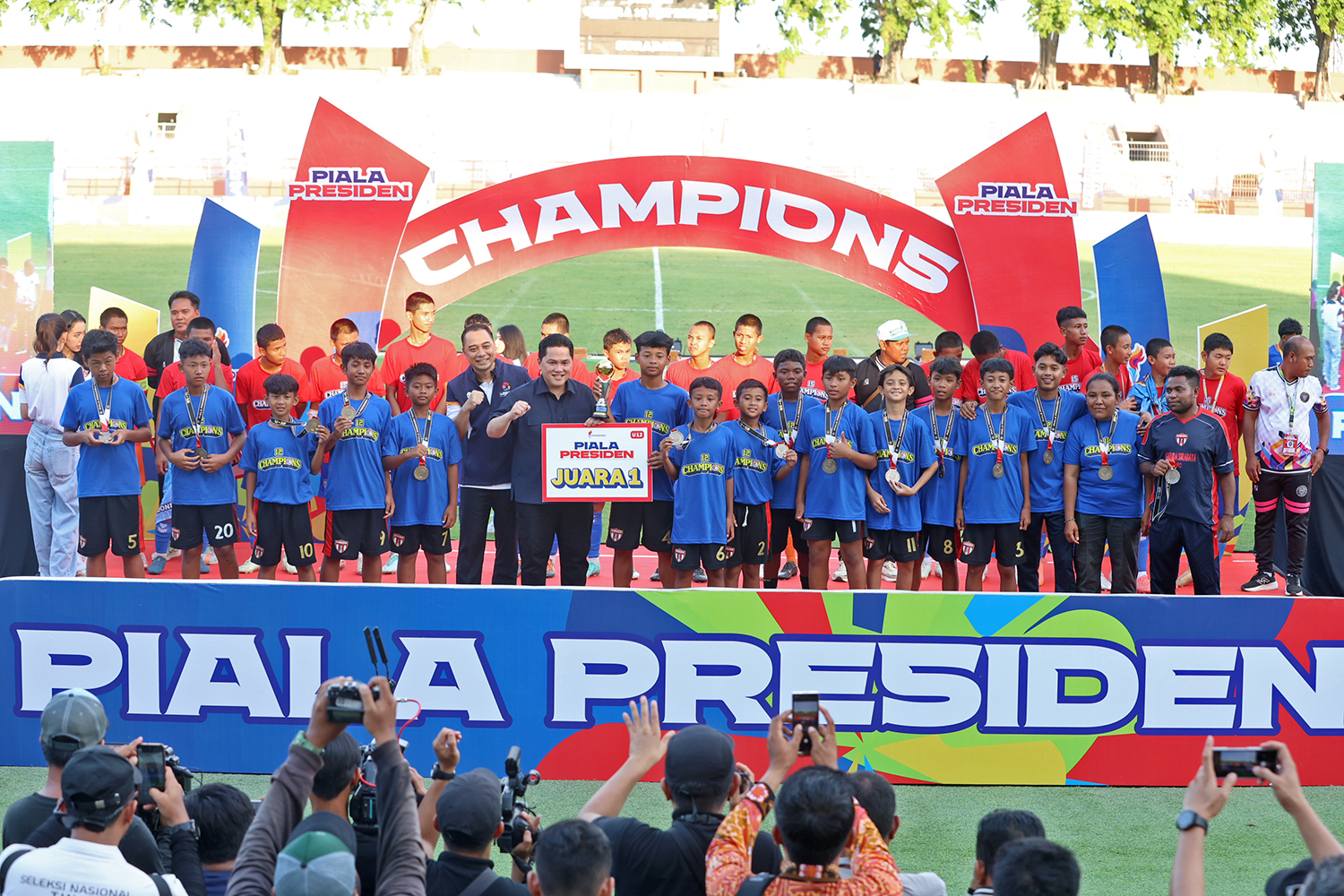 “Kita harus mendorong para pemuda untuk bisa bersaing, agar masa depan kita sebagai bangsa tidak sirna. Tetapi, setelah menang, mereka harus punya empati menghormati lawannya. Nah, ini yang kita saksikan hari ini di Surabaya,” jelas Erick Thohir.