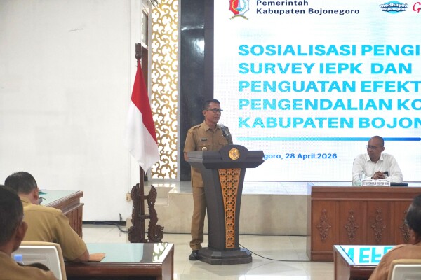 Bojonegoro 28 April 2026 | Draft Rakyat Newsroom – Pemkab Bojonegoro melalui Inspektorat menggelar sosialisasi pengisian Indeks Efektivitas Pengendalian Korupsi (IEPK) dan penguatan pengendalian korupsi digelar di Gedung Angling Dharma, Senin (28/04/2036). Kegiatan ini menitikberatkan pada penguatan integritas aparatur, pemahaman pengisian survei IEPK, serta langkah konkret memperbaiki sistem pengendalian korupsi di lingkungan Pemerintah Kabupaten Bojonegoro.