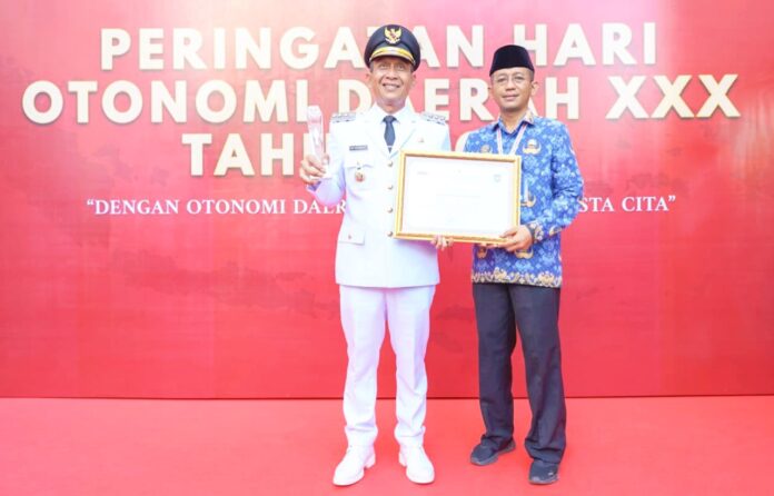 Penghargaan tersebut diserahkan langsung oleh Wakil Menteri Dalam Negeri, Bima Arya Sugiarto, dalam upacara peringatan Hari Otonomi Daerah ke-XXX yang digelar di halaman Kantor Kementerian Dalam Negeri, Jakarta, Senin (27/04/2026).