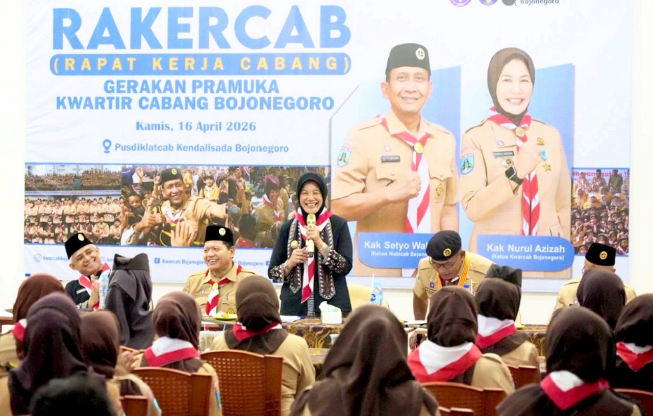 Komitmen ini ditegaskan langsung oleh Wakil Bupati Bojonegoro Nurul Azizah dalam kegiatan Rapat Kerja Cabang (Rakercab) Pramuka yang digelar di Gedung Lemdikacab Bojonegoro, Kamis (16/4/2026).