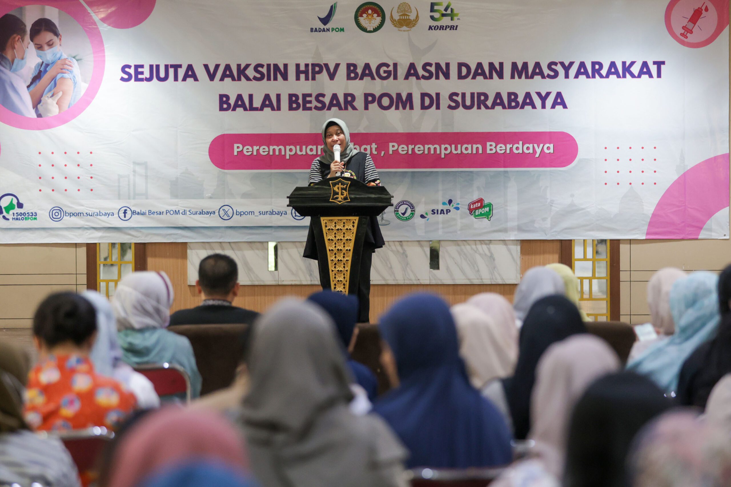 Sementara itu, Kepala Balai Besar POM di Surabaya, Yudi Noviandi mengatakan bahwa vaksinasi HPV yang digelar hari ini merupakan bentuk komitmen KORPRI bersama Balai Besar POM dalam menginisiasi Gerakan Sejuta Vaksin HPV bagi ASN dan masyarakat. Ia menyebutkan, pada pelaksanaan tahap pertama di Surabaya, jumlah peserta terdaftar yang telah melakukan pendaftaran dan pembayaran mencapai 424 orang.