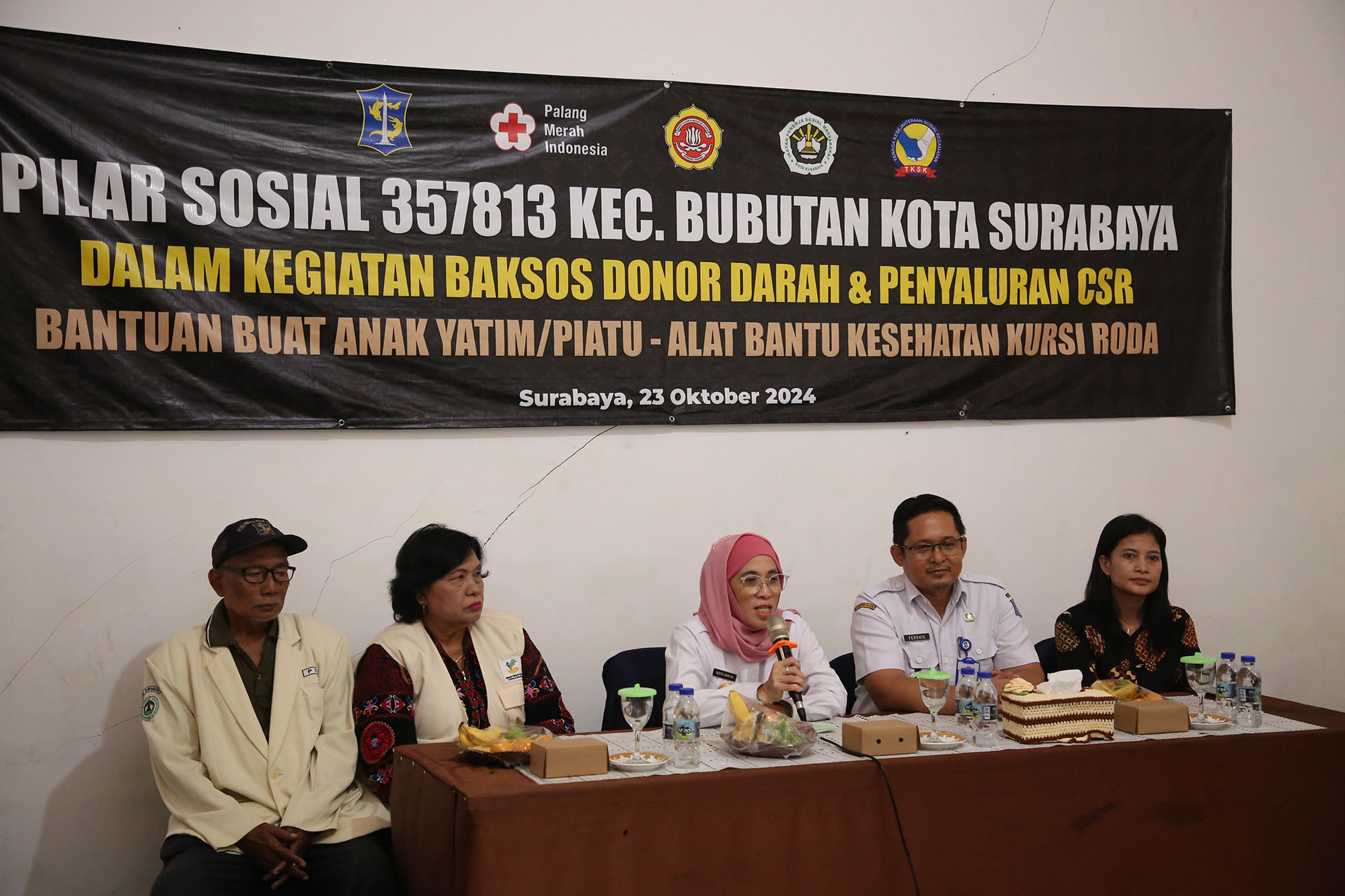 Surabaya 23 Oktober 2024 | Draft Rakyat Newsroom – Pemerintah Kota (Pemkot) Surabaya bersama Pilar Sosial 357813 menggelar bakti sosial (baksos) donor darah dan penyaluran bantuan untuk anak yatim piatu serta kursi roda untuk warga di wilayah Kecamatan Bubutan, Rabu, (23/10/2024). Dalam kegiatan ini, puluhan warga tampak antusias mengikuti donor darah di kantor Kecamatan Bubutan.